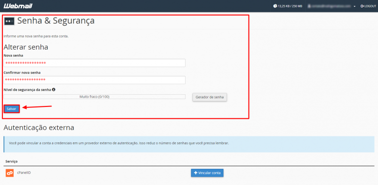 CPANEL – Alterar a senha de um e-mail Via Webmail / Cpanel