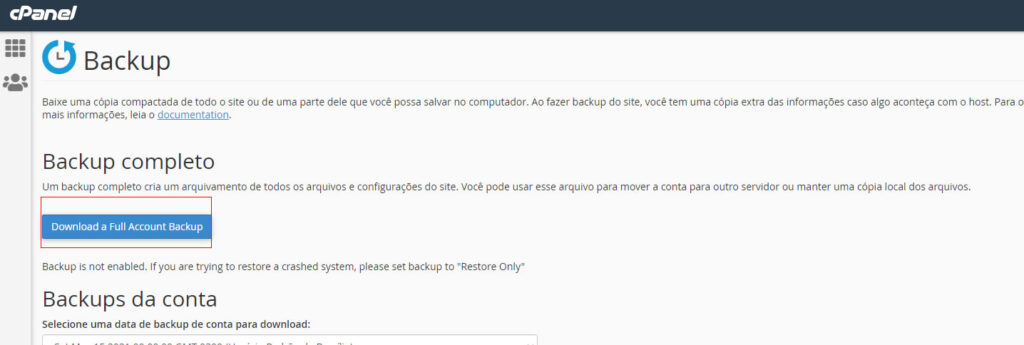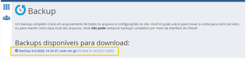 Após conclusão do backup, um arquivo com o conteúdo da conta será gerado e estará disponível para download através de um link