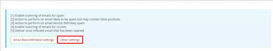 1- Na página do MailScanner, procure e click na opção Other Settings.