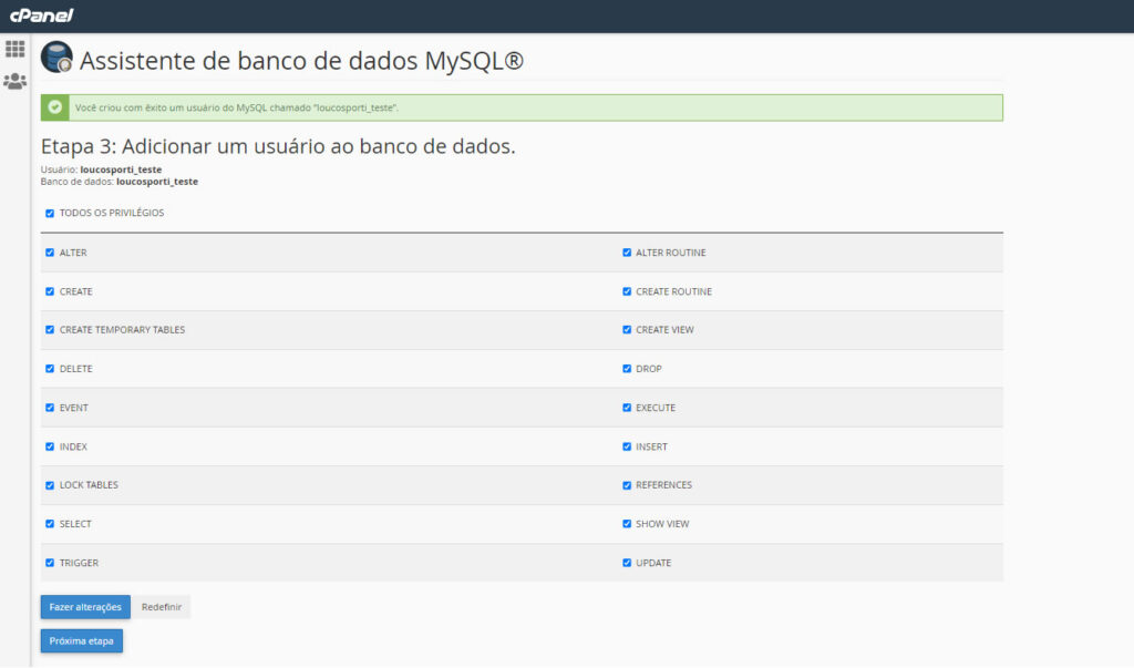 Etapa 5: Adicione TODOS OS PRIVILÉGIOS