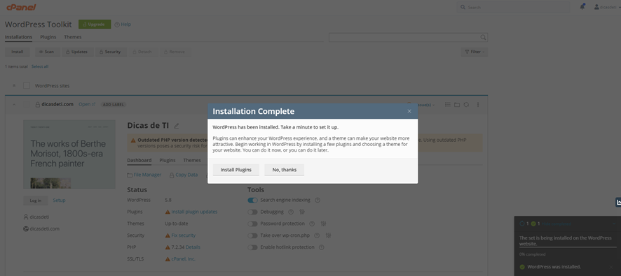 01 – Vamos Instalar wordpress com WordPress Toolkit, Clique em WordPress Toolkit