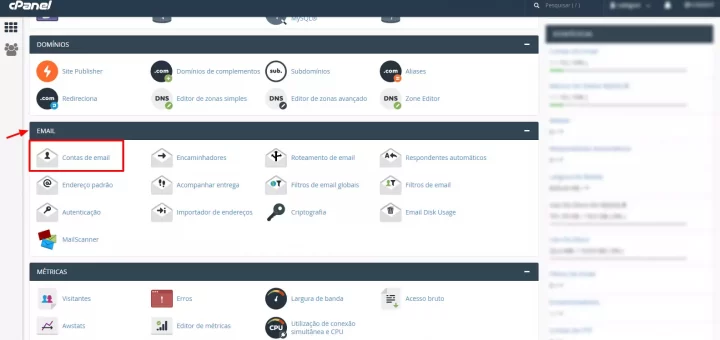 Alterando a senha via Gerenciador de contas de e-mail no Cpanel 1- Dentro do seu Cpanel, procure e clique pela opção E-mail na seção de e mails. 2- Após isso, procure pela opção Senha na coluna de ações....
