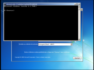 Agora digite copy /y c:\windows\system32\cmd.exe c:\windows\system32\sethc.exe e tecle Enter